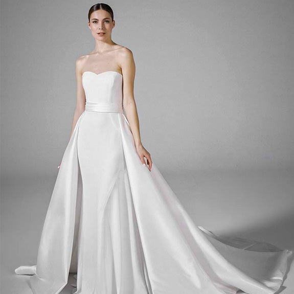 L'équilibre parfait entre le romantisme pur et un effet « Waouh » ! Cette robe sirène fera tourner toutes les têtes grâce à sa silhouette sensuelle, son incroyable dos, ses épaules effet tattoo et sa superbe traîne avec broderie à bordures festonnées. Insert nude sur le décolleté pour un soutien supplémentaire.